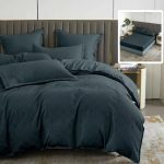 Lenjerie de pat natur uni baroque 6 piese cu husa (negru)