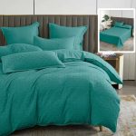 Lenjerie de pat natur uni stripe 6 piese cu cearsaf (turcoaz)