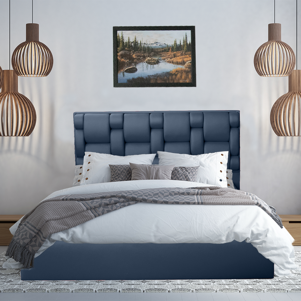 - Este prevazut cu o tablie ornamentala de dimensiunile 125×266 cm, o tablie inalta ce completeaza aspectul general al patului insa este si foarte practica si eleganta.