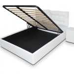 Pat tapitat Otto, modular, piele ecologica, cu sertar lenjerii si somiera rabatabila, 140×200, Culoare Alb