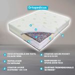 - Contine DOUA straturi de arcuri impachetate individual – tip pocket spring izolate perfect termic dar si foarte elastice.