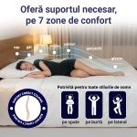 - celor care dorm pe spate sau lateral: stratul de memory foam ajuta la sustinerea zonei lombare atunci cand dormi pe spate si la reducerea presiunii din zona umerilor si soldurilor atunci cand dormi pe lateral.
