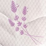 1. Husa cu Lavanda, de culoare alba, cu imprimeuri mov, foarte placuta la atingere, prevazuta cu fermoar perimetral, pentru a putea fi usor detasata si spalata in masina de spalat, la 30 grade, centrifugare mica.Husa saltelei nu este doar rezistenta, ea are si rolul de a izola termic corpul fata de nucleu si a absorbi eventualul exces de umiditate.