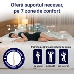 - celor care dorm pe spate sau lateral: stratul de memory foam ajuta la sustinerea zonei lombare atunci cand dormi pe spate si la reducerea presiunii din zona umerilor si soldurilor atunci cand dormi pe lateral.