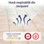 Salteaua dispune de o husa fixa, din tesatura Jacquard, un material respirabil, cu ochiuri fine, placut la atingere si usor de intretinut.