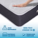 - Este foarte bine ventilata si uscata – avem de fapt mult aer, arcuri silentioase, spuma ortopedica si o husa cu Ioni de Argint