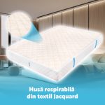 Husa este prevazuta cu manere laterale pentru o manipulare usoara, iar structura cu arcuri asigura o ventilatie foarte buna, mentinand un mediu de somn curat si proaspat.