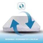 Este o saltea reversibila, ce ofera un nivel de fermitate 3/5. Desigur, cu cat greutatea scade, gradul de fermitate se percepe mai mare si invers, cu cat greutatea creste, fermitatea perceputa scade.