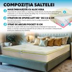 Saltea de pat Ortopedica cu Arcuri Pocket, 140×200 – Aloe Vera Adaptive 4 in 1, Topper detasabil 7 cm Memory, 35 cm, Hotel Range