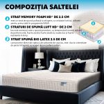 3. Memory Foam HD® de 2.5 cm, este un strat de spuma, pufoasa la atingere, contribuie la un plus de confort prin amortizarea miscarilor din timpul somnului, prelungeste durata de viata a saltelei.