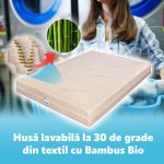 - Husa cu Bamboo Organic, este catifelata si foarte placuta la atingere, aspectuoasa, de culoare alb-verzui, este usor detasabila, prevazuta cu fermoar si este lavabila la 30 de grade.