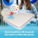 Pentru ca stim cat de importanta este igiena, am prevazut husa cu un fermoar perimetral, incat la nevoie sa poata fi dusa la curatatorie sau spalata chiar si acasa, intr-o masina obisnuita, fara costuri si batai de cap.