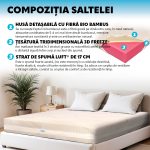 - Este deci o saltea de pat ce prezinta fermitate medie, fara arcuri, dar ortopedica si anatomica, foarte bine ventilata si rezistenta, recomandata pentru toate pozitiile de somn.