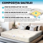 - Pocket Spring Layer 12 cm – este stratul de arcuri impachetate in buzunare de textil, cu rolul de a amortiza miscarile de pe saltea si de a mentine o temperatura joasa si un mediu uscat – sanatos.