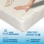 OEKO-TEX®, este certificarea internationala care atesta faptul ca textilele folosite in husa saltelei sunt sigure pentru sanatatea corpului uman, detaliu mportant pentru persoanele alergice.