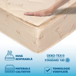 - Gratie inaltimii mari si a stratului gros cu arcuri impachetate dar si a unei huse groase cu fibre ECO de bumbac si de foarte buna calitate, este proiectata sa faca fata la umiditate crescuta, greutate peste medie si transpiratie abundenta.