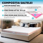 Salteaua este fabricata in Romania, cu materiale premium, prietenoase cu mediul si certificate.