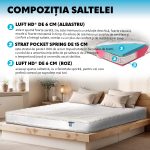 - Aceasta saltea de pat cu arcuri pochet , datorita materialelor folosite dar si a modului creativ de imbinare a lor, poate contribui la combaterea sau diminuarea durerilor de spate.
