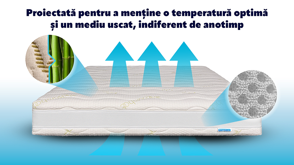 Obiectivul nostru este mentinerea saltelei la o temperatura scazuta, fiindca acest lucru inseamna sanatate; mediul uscat corelat cu o temperatura optima devine ostil aparitiei de microorganisme de toate felurile.
