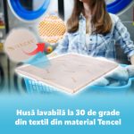 1. Husa Tencel, este prevazuta cu fermoar si se poate spala la 30 de garde. Este foarte placuta la atingere si aspectuoasa, de culoare bej, este o tesatura rara, cu o foarte buna aerisire si usor de curatat, in caz de nevoie.