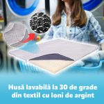 - Textilul husei cu Ioni de Argint este placut la atingere, are efect antibacterian, antiacarian si antimicrobian.