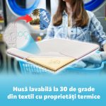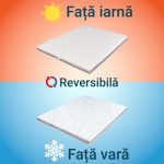 - Se remarca prin adaptabilitate sezoniera – Multumita celor doua fete, de vara si iarna, se adapteaza schimbarilor de temperatura si asigura un somn mai racoros/calduros, in functie de sezonul curent si preferinte.